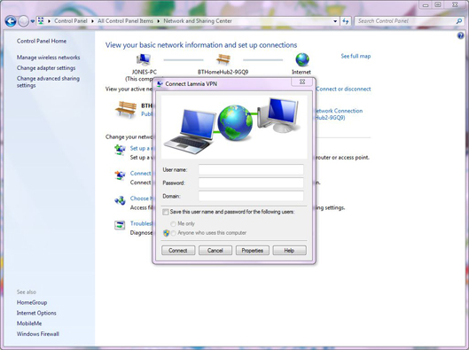 The first time you connect to Lamnia VPN, you might see a screen. Windows is asking you if you want to automatically connect to Lamnia VPN whenever you’re at a given location. If you want to connect to Lamnia VPN automatically when you’re at a public hotspot, click “Public location.”