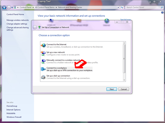 To connect to Lamnia , go to the Start button and click “Connect To”.