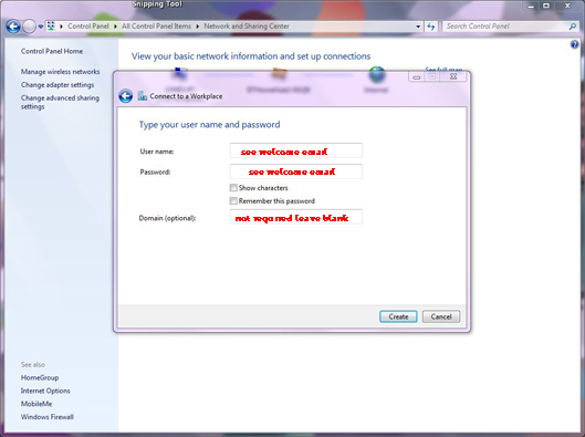 In the text box labeled ‘Internet address’ type ‘one of our server addresses from the Welcome Email
