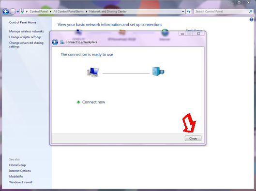 Click the “Close” button to return to the “Network and Internet” screen. |